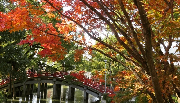 1.大濠公園 福岡市に位置する大濠公園は、秋になると公園内の紅葉が赤、黄、オレンジに染まり、まるで色鮮やかなキャンバスのように広がります。さらに公園内にある日本庭園は静寂の中、紅葉の木々が風に揺れ、池に映り込む景色はまさに幻想的。まさに福岡秋の風物詩といって過言はないでしょう。大濠公園には紅葉鑑賞以外にも楽しいアクティビティがたくさんあります。公園内の湖でボートに乗ったり、芝生の広場でピクニックを楽しんだり、子供たちと遊ぶのに最適です。また、紅葉の季節には特別なイベントやフードトラックも登場することがあります。